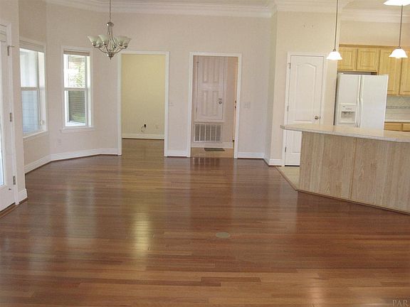 2008 construction right in the middle of NE Pensacola off Olive Rd near Scenic and 9th Ave. This 3 bed/2 bath home has a nice open floorplan with split bedrooms. First thing you notice upon entering are the 10 foot ceilings, hardwood flooring, double crown molding, gas fireplace, Spanish Lace ceiling finish and large windows with views of the nicely landscaped private back yard (which also has a 44 foot long screened in patio and a secondary open patio in the yard.) Kitchen has pendant lights, over-cabinet lights and is open to the living/dining areas. It includes a breakfast bar, Quiet wash Dishwasher, smooth top range and microwave which are all Maytag! Fridge is a Kenmore. Stainless sink has a brand new brushed nickel single-handle faucet, pull-out draws in lower cabinets and a lazy susan in the right side lower cabinet. New in 2014: bedroom carpet, paint in whole house and fence. Laundry room, kitchen and baths are all tiled. Additional bedrooms have nice sized closets, lots of windows and very thick carpet that was just professionally cleaned on April 19. Make sure to notice all of the additional storage closets on both sides of the house. In addition to the side entry two car garage, you will also LOVE the sprinkler system that is on a well. Plus, there are plenty of flowering shrubs including roses, azaleas, camellias and oleander. Fruit trees include meyer lemon, satusuma and blood orange. Extra tile and hardwood is included with sale. HOA dues are voluntary and neighborhood has sidewalks and underground utilities. Convenient to hospitals, PSC, UWF, Cordova Mall and about 25-30 minutes from Pensacola Beach.