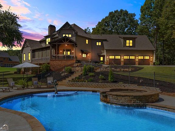Welcome to this STUNNING, beautifully updated 5BR/6.5BA EXECUTIVE ESTATE, located in an exclusive community of just 25 custom homes. Set on a PRIVATE, WOODED, LEVEL 2.41-acre lot, this home is a true retreat and an entertainer's dream, offering both luxury and privacy in a highly sought-after area. Extensively renovated with over $200K in recent improvements, the home features refinished hardwood floors, fresh interior and exterior paint, all-new lighting and ceiling fans throughout, updated quartz countertops and sinks in the owner's suite bathroom, a custom kitchen hood, designer backsplash, a freshly painted island, and new carpet in the basement entertainment space. The stately brick and stone exterior is complemented by professional landscaping, soaring mature trees, and new sod, all of which create outstanding curb appeal. A beautiful walkway leads to the rich arched front door, opening into a dramatic two-story foyer with exposed-beam ceilings and expansive natural light. Inside, the open-concept design features a spacious formal dining room with a gorgeous picture window, a great room boasting a natural stone fireplace, custom-built-ins, and rustic wood beams, as well as a wrap-around screened-in porch with peaceful views of the backyard and pool area-perfect for year-round relaxation and entertaining. The stunning chef's kitchen, seamlessly open to the family room, boasts stainless steel appliances, rich custom cabinetry, an oversized island, and soaring tongue-and-groove ceilings. A spacious walk-in pantry offers ample storage, while the adjacent breakfast room-with elegant French doors-opens to a screened porch overlooking the serene pool and lush backyard. The main-level owner's suite is a private sanctuary with a large sitting area, direct access to the screened porch overlooking the serene backyard, and a spa-inspired bath complete with a sunken bubble tub, oversized shower, dual vanities, and a generously sized custom walk-in closet. A well-designed mudroom off the garage entry includes a utility sink and a full bath, providing practical everyday functionality for guests at your pool and a laundry room with generous cabinets. Upstairs, you'll find three oversized secondary bedrooms, all with walk-in closets, including two with private ensuite baths and a second laundry room. In addition, the large bonus room above the garage provides versatile space ideal for an oversized bedroom, home gym, media room, office, or playroom. The finished terrace level offers even more living space, including a large entertainment room with a gorgeous stone fireplace, brand new carpet, a full bathroom, and an additional 810+ sq ft tandem two-car garage. Car enthusiasts and large families will appreciate the home's two garages. The main level garage features an expansive 1,200 sq ft. of space with 13-foot ceilings, extra-large garage doors, storage closets, and plenty of windows. Step outside to the covered lower patio and enjoy tranquil views of your private, wooded backyard oasis. With no HOA and a location just 5 minutes from shopping, dining, and the brand-new Cumming City Center, this property combines the best of luxury living with everyday convenience. Close to award-winning Forsyth County Schools and just 20 minutes from Lake Lanier. This is a rare opportunity to own a truly exceptional home in a prime location! Don't miss your chance to make it yours! Schedule your tour and discover your DREAM HOME today!