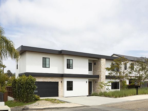 3970 Highland Dr. is a stunning contemporary home located in Old Carlsbad. The house features a modern exterior with bold metal lines and stone, offering an open floor plan and a seamless flow. The living room and kitchen are surrounded by glass walls, doors, and windows, allowing plenty of natural light to illuminate the space. The pocketing Arcadia doors create a true indoor/outdoor living experience. The elegant interior includes a striking steel floating staircase with a glass handrail, framed by a wood wall panel on a concrete floor. The kitchen is equipped with high-quality appliances and plumbing fixtures (Subzero, Wolf, and Kohler Purist), custom cabinets, and island/countertops with a quartz slab. This home has 3,691 square feet of living space, four bedrooms, five bathrooms, a kitchen, a pantry, a family room, an upstairs laundry room, an office, a two-car garage, a pool with SPA, and a backyard. The master suite is remarkable, featuring 1100 square feet in addition to the bedroom, office/sitting area, bathroom, and walk-in closet. The master shower is surrounded by two pieces of bookmatched porcelain, creating a modern and artistic feel. This home gracefully combines simplicity and grandeur, defining a new generation of luxury.