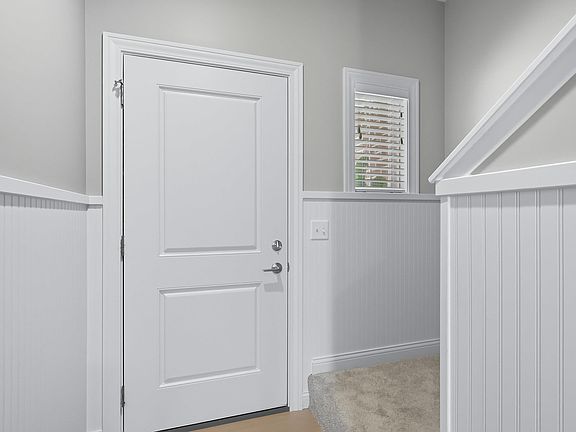 Large second floor laundryWalk-in closetQuartz countertopsVaulted primary suiteDouble sinksWindow in the stairwell