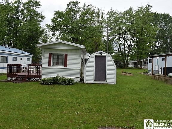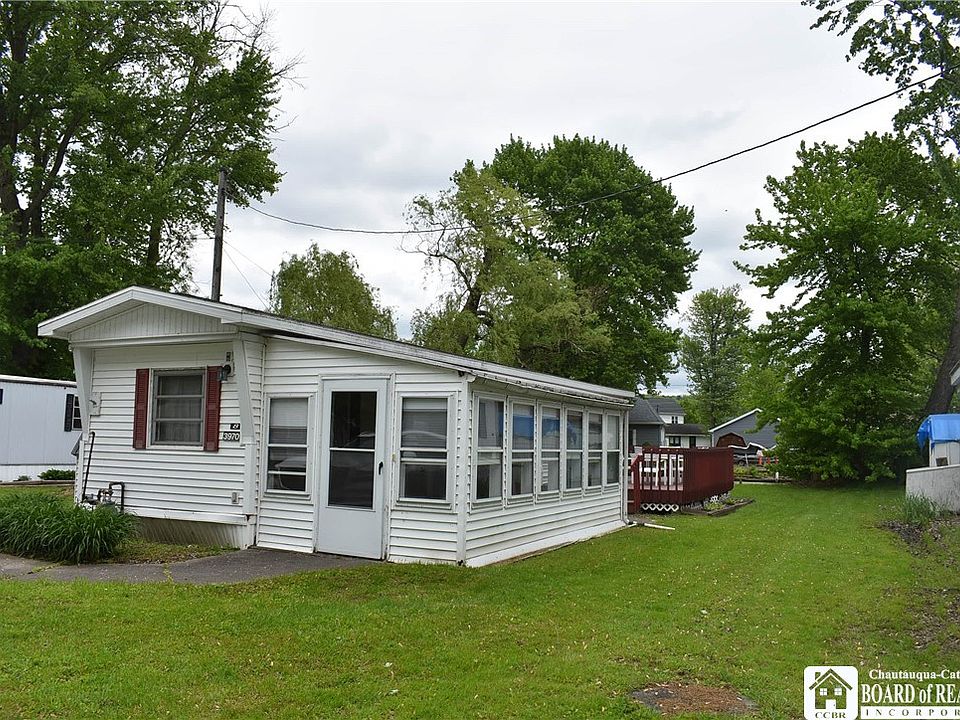 A Single wide Mobile home canal front on (Chautauqua Lake), 2 Bedrooms 1.5 bath with an Enclosed Sun porch with Electric. 2 sheds 1 with hook ups for washer and dryer. large deck. Walking distance to Bemus Point.
