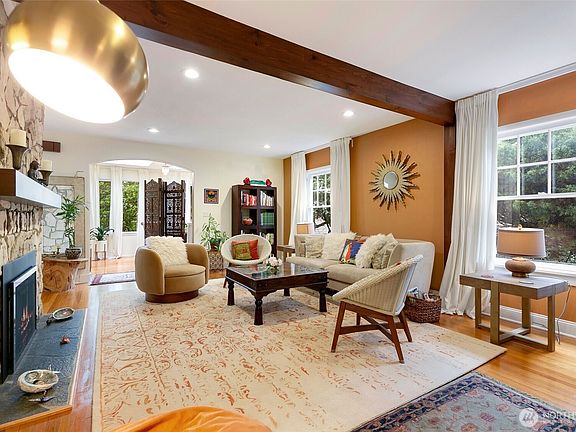 Charming Snoqualmie retreat with river and territorial views. Tucked on a quiet dead-end street next to green space, this home blends historic charm with modern updates. Stroll to downtown shops, dining, parks & trails. Inside, hardwood floors, stone FP & wood beams create a cozy farmhouse feel. Updated kitchen flows into bright living spaces. Main-floor primary offers garden views and ensuite w/ tiled ¾ bath. Another main-floor bedroom shares a bath w/ clawfoot tub. A covered deck extends from the 4th bedroom. Upstairs, a spacious bonus/bedroom space offers storage, full ensuite bath & mtn views. The 980 sq ft unfinished walk-out basement has a fun bar, workout area, gardening bench & workshop. Lush gardens complete this must-see home!