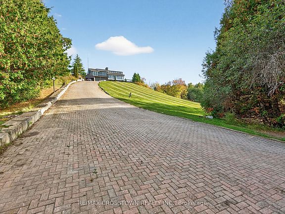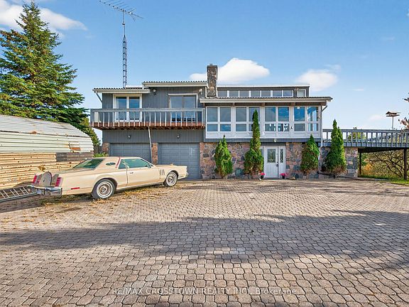Welcome to your dream Country Estate in Bradford Ontario. Peaceful private and spectacular endless views. Custom built home with architecturally vaulted beams ceilings, sunken living room, multiple walkouts, wall to wall window, floor to ceiling crafted natural stone fireplace with impressive calved stone mantal, captivate views of your own beautiful 100x200 ft pond. This pond is 12 feet deep, spring fed a nature's paradise full of fish and visiting wild life. Live on 4 acres with apple trees, perennials, large trees across from conservation land. walking the property will unfold all the added interest. large workshop with double car garage, trailer for storage, large metal outbuilding for tools, toys, ATVs, snowmobiles. 3 driveways, fantastic to store motor-homes, transport truck, work vehicles a like. Main property consist of 2 lots that most would combined into 1 massive lot. Possibilities are endless. Come and enjoy planning your vision on the wrap around deck as you watch the magnificent sunset.
