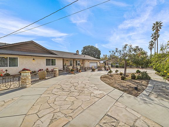 Discover your dream home in Norco! This custom-built gem, spanning 1,884 sq. ft., offers a blend of comfort and style. It features three roomy bedrooms and two bathrooms. The charm begins right at the electric-gated entry, leading to a fenced front yard with an impressive circular driveway and a 2-car garage. The front yard's extensive stonework, complemented by strategic lighting, sets a welcoming tone.