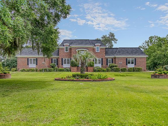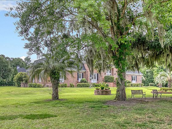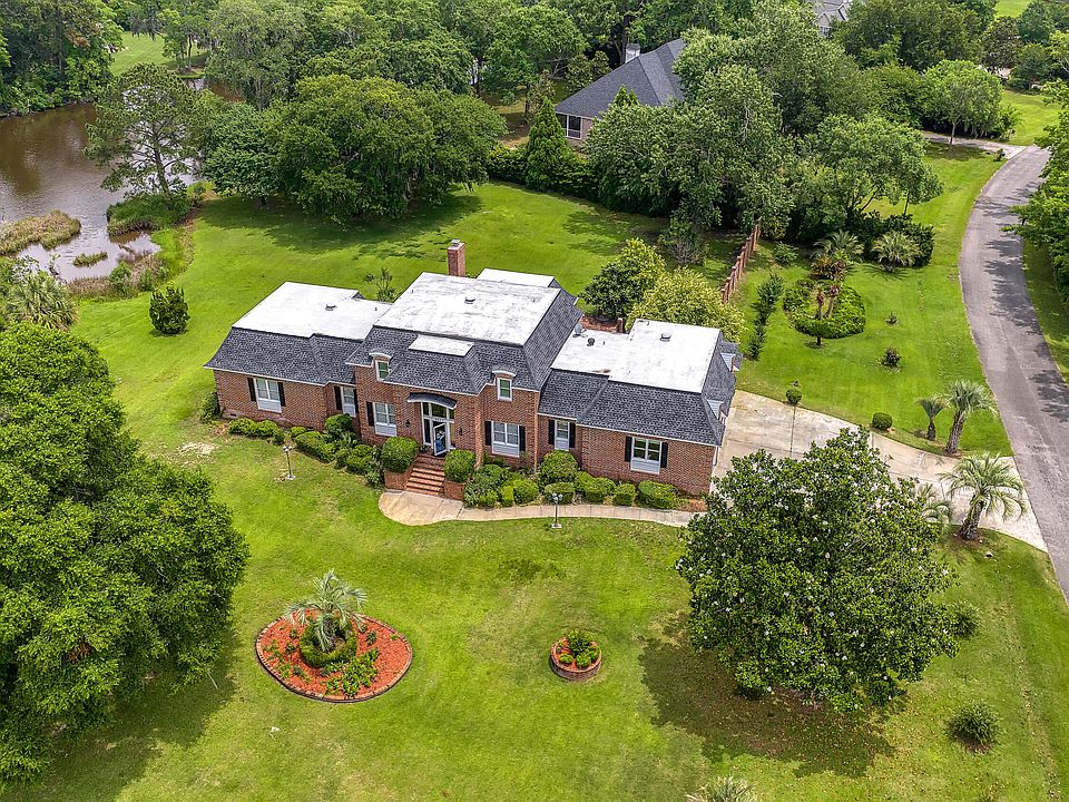 Custom built Lowcountry classic brick home situated on a magnificent 1.56 acre lot bordering beautiful wetlands and a large pond. A rare private setting accomplished with curated landscaping that includes a grand oak with Spanish moss, an exquisite custom built brick fence bordering one side of the property and a perfectly positioned home. Designed to enjoy both indoor and outdoor living, there is an elegant wrap around brick patio that encompasses the full rear of the home with multiple access doors from the first floor primary bedroom and the family room. The stunning charm and character of the brick patio and the gorgeous views of the mature landscaping, the Lowcountry wetlands and the pond along with breezes from the Stone River make it particularly desirable.The interior of the home is equally impressive. The home features a dramatic two story foyer with a soaring front door wall of windows. On either side of the foyer, through arched doorways are the formal dining and living room. Down the hall, you will find an office with built in's and a powder room. The family room and first floor primary bedroom are oversized and can accommodate most any furniture and design selections. The kitchen is open with multiple pantries and an adjoining breakfast area. Steps from the kitchen is a large laundry room and another powder room. There is a three car attached garage with a separate exterior access door. Not included in the bedroom count is a large fully finished frog. The home is built on a four foot crawl space with access through the garage or exterior of the home. Recent updates to the home include a new roof, three new HVAC systems, two in 2023 and one in 2020. In addition, the home is directly across the street from the Gift Plantation community boardwalk and deep water dock with picnic areas.