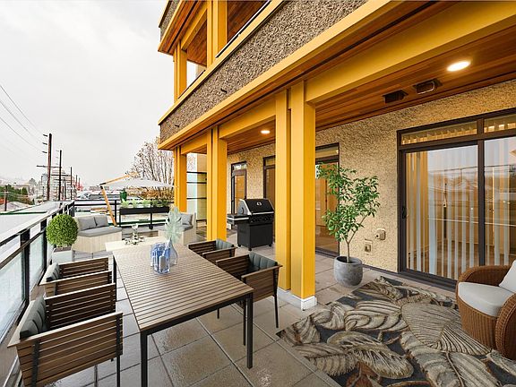 VERDI – Luxury Living in The Heights. Rarely available, elegant 3 bedroom, 2 1/2 Bath home offers bright open layout w/ 9' ceilings, wide-plank hardwood flrs. Gourmet kitchen & W/I Pantry, w/quartz countertops, premium Bosch & Fisher Paykel appliances. Relax & enjoy mountain & city views from your extra-large, partially covered 460 sq ft patio--perfect for year-round entertaining. 30 min to downtown Vancouver; Steps to transit, schools, parks, shops & cafés. 1 large parking & storage locker included. Community rooftop deck w/breathtaking City & Mountain views.