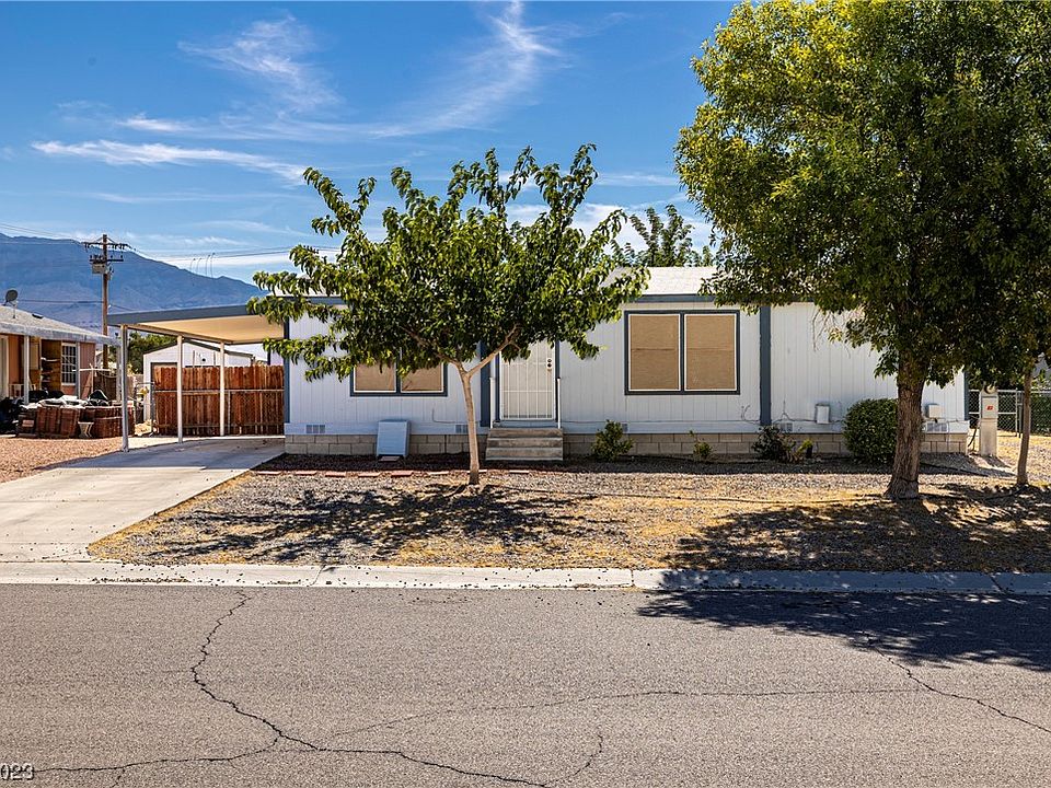 Clean move in ready home listed for a great price! This country home is located on the desirable North end of Pahrump. The split floor plan home has 3 bedrooms and 2 full baths. Primary bedroom has a walk-in closet and the other 2 bedrooms offer mirrored doors. The enclosed back porch/storage area can be accessed from the back porch or from the oversized 2nd bedroom. Home has 2 carports, one attached on the side., and RV gates allow back yard access to the second carport. 2 good sized storage sheds (Approx. 9x9 and 15x12), one wired and lighted (9x9) round out the home. Enjoy mature rose bushes and amazing mountain scenery from the back yard. Come check this adorable home out and make it your own.