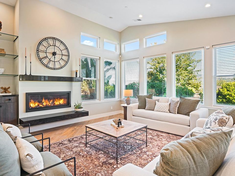 Welcome to this beautifully appointed single story residence in the highly sought-after Fountaingrove community. Set on a generous .50 acre lot, this 4 bedroom, 2.5 bathroom home combines luxury, functionality, and elegant design in a stunning Wine Country setting. A tranquil courtyard entry leads you into an airy, light-filled interior with high ceilings and hardwood flooring throughout. Many windows flood every room with natural light, creating a warm and inviting atmosphere. Ideal for both entertaining and everyday living, the home features formal living and dining rooms, as well as a spacious family room with a cozy fireplace. At the heart of the home is a chef's dream kitchen, complete with a striking granite waterfall island, and stainless steel appliances, perfect for entertaining in style. Retreat to the private primary suite where you'll find direct access to an outdoor hot tub and open-air shower - your personal spa oasis under the stars. This home also includes a 3-car garage, a beautiful mature landscaped yard with mountain views and multiple outdoor areas for relaxing or hosting guests. This Fountaingrove gem offers the perfect blend of comfort, sophistication, and Wine Country charm-all on a peaceful, half acre setting.