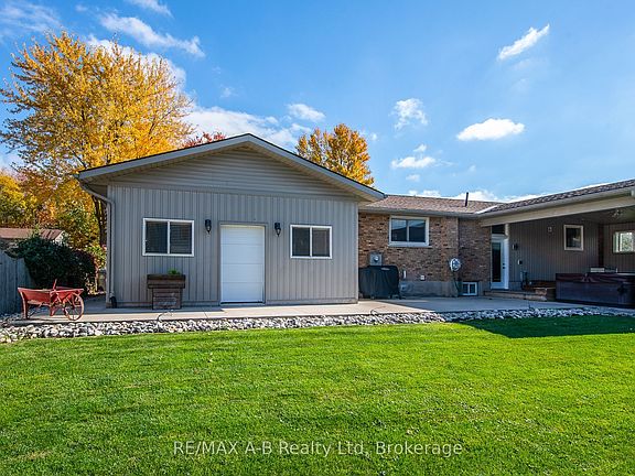 Welcome to this beautiful, 3-bedroom bungalow situated on Burns Street in the charming village of Shakespeare. This home seamlessly combines comfort and functionality, offering an irresistible package for families and individuals alike. The main floor boasts a spacious, open-concept layout with abundant natural light streaming into every room. Each of the three generously sized bedrooms provides ample space, making them ideal for family, guests, or even a home office. Step directly from the kitchen to your private entertainment area, enclosed on three sides to protect you from the elements. This inviting space is complete with a bar and a hot tub, making it perfect for hosting lively summer gatherings or enjoying a peaceful winter soak. Designed for year-round enjoyment, this outdoor area elevates your entertaining possibilities. The fully-finished basement extends your living space and features a second gas fireplace, creating a cozy recreation or media lounge. There is also a separate area ideally suited for a home gym. Additional conveniences include a laundry area, a three-piece bathroom, and a walk-up to the 'man cave'. This home features every enthusiast's ultimate workshop. The garage / shop area is a dream space for any hobbyist, equipped with heated floors for year-round comfort, a full size garage door at the front and roll-up door providing access to the rear yard. Whether you enjoy tinkering, building, or simply unwinding, this versatile area is designed for you. A dedicated "men's room" with a sink and urinal adds an extra layer of convenience. This property is more than just a house - it is a lifestyle opportunity. Nestled in a peaceful, friendly community with convenient access to Stratford, Kitchener-Waterloo, and the surrounding areas. Discover a home that meets all your needs and invites you to experience the best of comfortable village living.