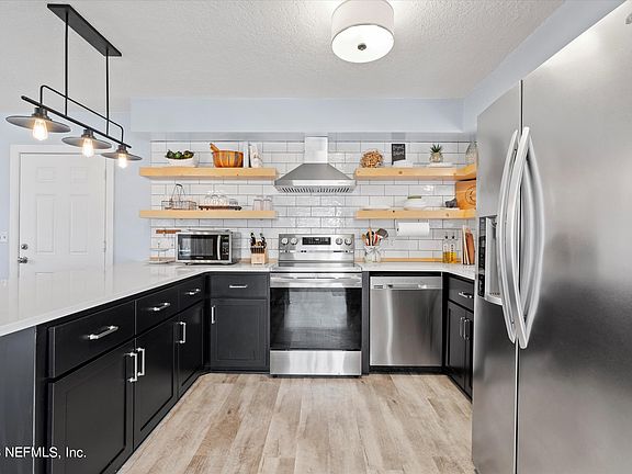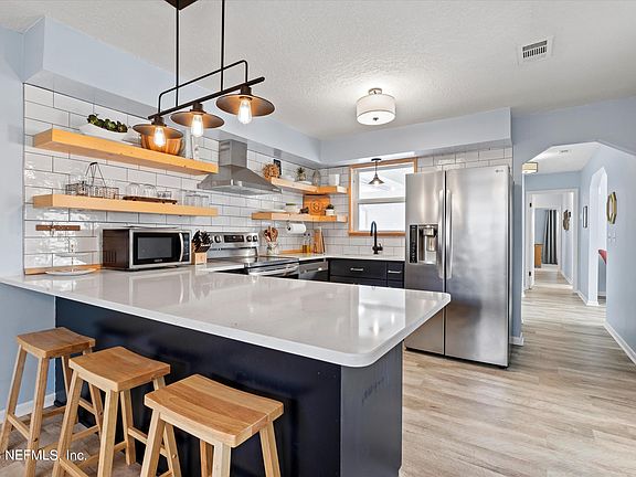 MO H&B DUE BY 12:00PM 5/4/23. Tastefully upgraded w/newer windows, AC, hot water heater, knockdown ceilings, luxury vinyl floors. Large open living spaces, w/ tons of natural light. The open shelving kitchen provides a trendy yet functional space, w/quartz countertops & stainless appliances. Plenty of storage throughout. Master bedroom boasts a walk-in closet! Situated on a large lot with lush yard. Relax on the covered porch, perfect for entertaining as it flows from the kitchen & dining. Full brick exterior & 2 car garage w/courtyard entry adds durability & plenty of parking. Inviting front porch w/double front doors. Vibrant neighborhood close to beach, shopping & restaurants. This home combines classic appeal with modern comfort and a perfect home base to explore the areas amenities