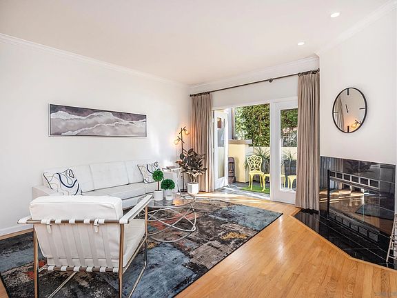 This rare corner townhouse in the highly desirable Uptown District is a standout property! One of only 20 townhouses in the community, this beautifully upgraded home boasts a spacious, open-concept living and dining area with rich hardwood floors and two sets of French doors leading to private patios off both the living and dining rooms. The kitchen features upscale wood cabinetry, quartz countertops, and generous workspace, perfect for any home chef. Upstairs, you’ll find two ensuite bedrooms, with a bedroom offering a walk-in closet and a private balcony. Both bathrooms have been upgraded with new quartz countertops, and the entire home has been freshly painted. Additional highlights include a brand-new washer and dryer, a cozy fireplace, two private patios, and ample storage under the staircase and in the back patio cabinet. Newer HVAC and water heater.  The property includes two assigned parking spaces, and electric vehicle charging stations available on a first-come, first-served basis. Residents enjoy resort-style amenities, including a year-round heated pool, spa, BBQ area, gym, and private dog park. Located just steps from Trader Joe’s, Ralphs, coffee shops, restaurants, and more, this townhouse offers the perfect balance of luxury, comfort, and convenience.