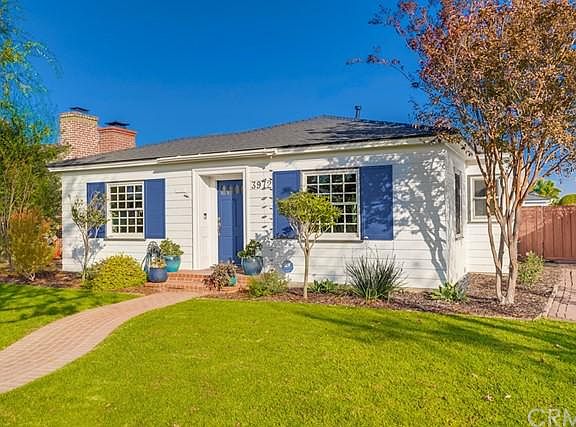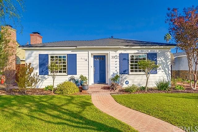 A gorgeous Traditional style home in the highly sought after neighborhood of Bixby Terrace. This home retains all the character one would expect from a 1930's era residence while being being sensitively updated to today's preferences. Warm toned hardwood floors, plaster walls, crown moldings and custom millwork throughout. The living room is light filled with French paned windows, wood burning fireplace and built-in wall display niche. The formal dining room overlooks the front grounds and opens on to the remodeled kitchen. The kitchen features gray tones shaker style cabinets and pantry, quartz countertops, farm sink and stainless steel appliances. The kitchen leads to the laundry with stack washer & dryer, folding counter and additional storage cabinets. The primary bedroom has an attached 1/2 bathroom, generous walk-in closet and French slider to rear patio and grounds. The front guestroom is quite large and features 2 storage closets. The 3 bedroom is huge and can be used as a den/media room. This room features built-in bookshelves and its own exit to the rear patio. The hall full bath has been remodeled to the period with stall shower, original tub, black and white tile and large vanity with plenty of storage. The rear yard is graced by a covered patio, wide expanse of lawn, sun patio and avocado and citrus trees. The alley accessed 2 car garage is equipped with an automatic opener. Other features include HVAC system, newer roof, updated electrical, dual paned windows, tankless water heater, copper plumbing and Ring entry system.