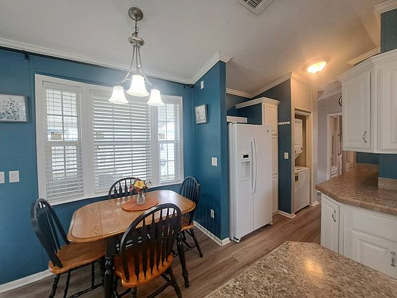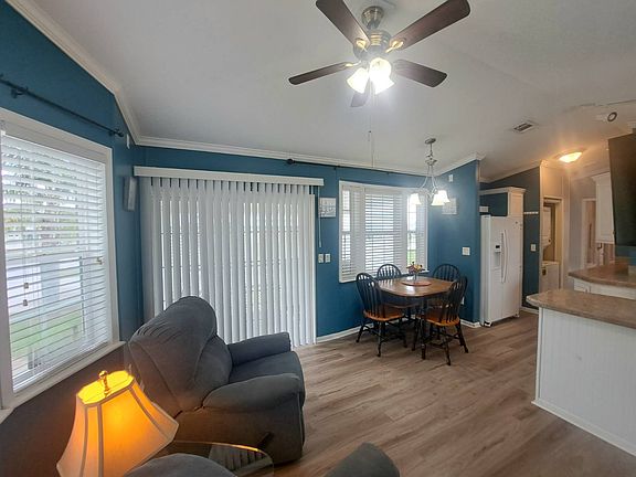 2016. Fully Furnished. Central AC. Ceramic Tile Floors in the Bathroom and Kitchen and New Vinyl Plank Flooring Throughout the Rest of the Home. The Eat-In Kitchen Has Plenty of Cabinets and Countertop Space. The Living Room has Sliding Glass Doors that Lead to the Carport Area. There is a Working Platform Lift at this Entrance, with a Warranty. The Bedroom has a Queen Size Bed, Ceiling Fan, Built in Dresser, Mirror Sliding Door Closet with Built in Drawers Underneath. The Bathroom Has a Step in Shower Insert, Wrap Around Countertop, and Lots of Cabinet Space. There is Indoor Laundry with a Brand-New Stackable Washer and Dryer. There is a Detached Shed with Overhead Storage Shelves. This Home is on Leased Land with a Monthly Fee of $638. Majestic Oaks is an Active 55+ Pet-Friendly Community. There Are No Credit or Income Requirements. The Park has a Beautiful Clubhouse with Fitness Center, Billiards, and Library. Stop by the Clubhouse for Bingo, Karaoke, Socials, Potlucks, Music Jam Sessions, and More. Outside the Clubhouse is the Heated Swimming Pool, Shuffleboard, Bocce Court, Horseshoes, Pickleball Court, Tennis Court and Dog Run. Close to Shopping, Restaurants, a Hospital, Medical Offices and More. Majestic Oaks Lot Rent Includes Lawn Care. All listing information is deemed reliable but not guaranteed and should be independently verified through personal inspection by appropriate professionals. American Mobile Home Sales of Tampa Bay, Inc. cannot guarantee or warrant the accuracy of this information, measurements, or condition of this property. Measurements are approximate. The buyer assumes full responsibility for obtaining all current rates of lot rent, fees, and pass-on costs. Additionally, the buyer is responsible for obtaining all rules, regulations, pet policies, etc., associated with the community, park, or home from the community/park manager. American Mobile Home Sales of Tampa Bay, Inc. is not responsible for quoting of said fees or policies.