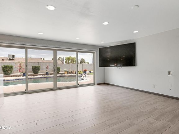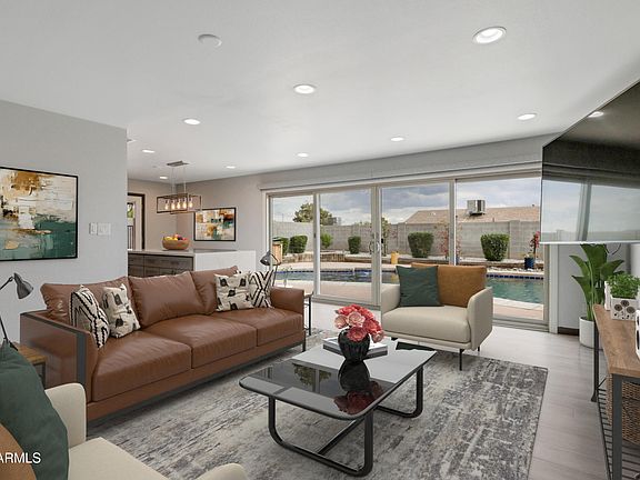Step into this stunningly updated 3-bedroom, 2-bathroom home where style and comfort shine. The spacious living room opens up to the backyard oasis through four large glass sliders — giving you spectacular views of the sparkling pool and creating that perfect indoor-outdoor Arizona vibe.