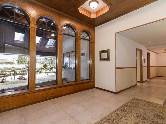 This luxurious 3 bedroom 3 Bath one story home is not only visually stunning it is very comfortable to live in. The gorgeous entry with custom oak doors and tile flooring welcomes you home as you gaze upon the atrium and the massive outdoor patio perfect for enjoying the warm Antelope Valley evenings. This home is filled with warm rich wood trim, casements and solid 6 panel doors The kitchen is perfect for entertaining with solid surface counter tops. a very large center island with stainless steel oven and cook top. A dinning nook is adjacent to the kitchen along with an eat at counter which opens directly into the family room. The family room has a warm and inviting brick fireplace with a large hearth stretching to the vaulted ceiling. The oversized master bedroom is fit for a king and