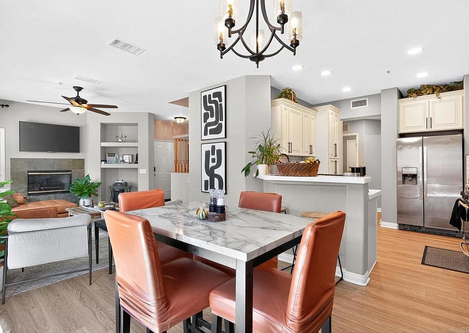 Currently being rented as a 31 day airbnb rental averaging $6500/month. Discover comfort, style, and privacy in this beautifully updated end-unit townhome nestled within the serene Old Schoolhouse gated community. Step inside to a bright, open floor plan where the fully remodeled kitchen and dining area flow seamlessly into the inviting living room, featuring a charming rock fireplace and plantation shutters. Just beyond, a private patio with full concrete surfacing offers the perfect spot for morning coffee or evening relaxation. Downstairs, you’ll also find a versatile bedroom ideal for guests or a home office, a convenient half bath, and a dedicated laundry room. Upstairs, the spacious primary suite provides a peaceful retreat with its ensuite bathroom and walk-in closet, while two additional bedrooms and a cozy niche create the perfect work-from-home setup or study space.The home also offers an attached two car garage. With new vinyl flooring and carpet installed within the past year, this home is truly move-in ready. The community offers a tranquil setting with a sparkling pool and spa—all just five minutes from shopping, top-rated schools, and freeway access.