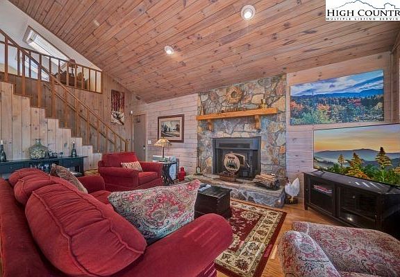 Discover the tranquility of mountain living in this charming Beech Mountain home, where comfort meets rustic elegance. Go inside to find beautiful wood floors throughout, creating a warm and inviting atmosphere. The open and welcoming family room offers space for relaxing and entertaining guests. The fully equipped kitchen comes ready for use, complete with all appliances and colorful Fiestaware dinner settings, everything you need to make mealtime easy and enjoyable. Comfortable bedrooms and baths provide ample space for family and guests, ensuring everyone feels right at home. Upstairs, a versatile loft with a full bath offers endless possibilities, ideal as a guest suite, home office or cozy reading nook. Sold completely furnished, featuring stylish Broyhill furniture, this home is ready for you to move in and enjoy from day one. Take in the serenity of the outdoors from the spacious screened-in porch or the expansive open deck, wonderful for soaking up the mountain air. Enjoy breathtaking winter mountain views from this peaceful retreat, conveniently just 30 minutes from Beech and Sugar Ski Resorts and only 15 minutes from Banner Elk. Whether you’re searching for a cozy getaway or a prime short-term rental opportunity, this property offers a blend of charm, comfort and investment potential. Note: There is a 483-square-foot variance between professional measurements and tax records. The basement is partially finished by a previous owner, however, it is unpermitted and lacks a heat source. The primary bedroom measurements are also excluded from the total heated square footage due to the absence of a heat source.