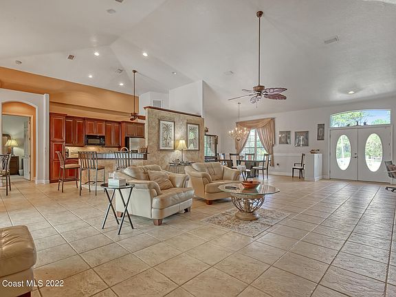 Beautiful COUNRTY ESTATE, with lots of extras, starting with UNDERGROUD ELECTRIC - Radiant Barrier Roof - 4 Car Garage - Paver Driveway and elegant paved front entrance with double doors - screened Pool with stone waterfall, large, covered patio & separate pool bath + Shed! Beautiful land with mature shaded trees and a large lake, shared with neighbors in the back. Please view plat-map. Seller kept it in natural state, you will have many possibilities to utilize. The double entrance door opens to a bright, spacious Great room with a modern kitchen with granite counters, wooden cabinets plus stainless-steel appliances. Large Master suite and bath with double vanity, garden tub, separate shower. Plus, big utility room. Tile floors throughout living area.