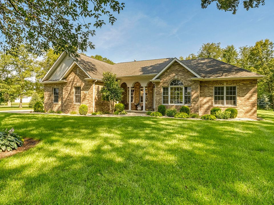 Discover the charm of this 3-bedroom, 2.5-bath ranch home nestled on a stunning 1-acre corner lot. Spanning over 2,000 square feet, this residence welcomes you with its impressive 9-foot ceilings and vaulted architecture in the living room, primary bedroom, and den, creating an open and airy ambiance. The primary bedroom is a serene retreat, boasting a luxurious en-suite bathroom for ultimate relaxation. Cozy up in the inviting seating area, the perfect spot to lose yourself in a captivating book.The elegant formal dining room features a striking double tray ceiling, complemented by beautiful hardwood flooring that extends throughout the living room, kitchen, and den. Cozy up during those cooler evenings by the gas fireplace in the living room, perfect for creating warm memories with family and friends.The heart of the home, the kitchen, is designed for both functionality and style, boasting an abundance of cabinet space, a convenient breakfast bar and breakfast nook, and a substantial pantry, ensuring all your storage needs are met. Whether you're hosting gatherings or enjoying quiet moments, there's ample space for entertaining indoors and outdoors, come rain or shine.The split floor plan has two additional bedrooms that share a jack and jill bath on the opposite side of home. Den boosts windows, natural light and french doors. Step outside to the inviting covered front porch, an ideal spot to relax and watch the world go by. The beautifully landscaped yard, equipped with a sprinkler system, ensures pristine outdoor aesthetics year-round. Enjoy serene moments on the back deck and stamped concrete patio, where you can take in the tranquil views of your picturesque surroundings. Lastly, the oversized 3-car attached garage has built in storage.As an added bonus, this home comes without any HOA fees, giving you the freedom to enhance your living experience without additional costs. Don't miss the opportunity to make this exceptional property your new home.