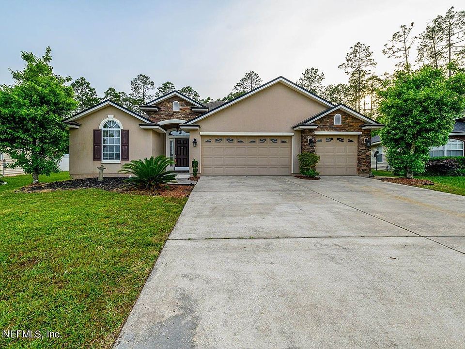 Welcome home to Two Creeks! This 4 bedroom, 3 full bath, 3 car garage home has been meticulously maintained & offers new LVP flooring throughout, carpet in bedrooms, spacious eat-in kitchen with prep island & breakfast bar that overlooks the living room, separate formal dining room with wainscoting, split bedroom arrangement & inside laundry! The master bedroom offers ample closet space & master bath features his & hers vanities, soaking tub & separate shower. Enjoy your morning coffee on the screened-in lanai! Large backyard backs up to the preserve and there is plenty of room for a pool! Take advantage of Two Creeks many amenities!