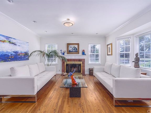A beautiful Traditional style home on a desirable wide street in Bixby Terrace. This home is generously proportioned exuding formal grace and elegance. The spacious living room is light filled and features gleaming hardwood floors, wood burning fireplace and crown moldings. The formal dining area leads to a family room that accommodates a grand piano and entertaining area. Open kitchen features built-in display shelves , classic white glass fronted cabinetry, granite counters and stainless steel appliances. The back of the home has 3 sets of french doors that lead to the 350 square foot covered patio with gas burning fireplace. All bedrooms are spacious with extra deep closets. Hall bathroom has been recently remodeled with white subway tile walls and gray quartz counters. The 330 square feet master suite has french doors leading to rear yard, a large walk-in closet and master bath with dual sinks and frameless glass shower. The rear yard is lush and private with tall sheltering hedges and tropical foliage. A serene fish pond and waterfall punctuates the oasis. This home is in pride-of-ownership condition and will surely sell very fast.