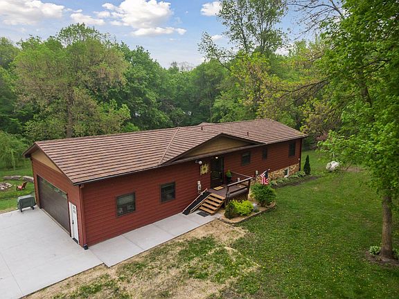 Best of both worlds, 6.73 acre country home on a large, private wooded lot with ponds and lake lot across the street on Lake Volney to keep your boat & dock in the water. Main level features two bedrooms, laundry room and full bath, newer windows on entire level and sliding door. Lower level has in floor heat fueled by outdoor wood burner, 2nd kitchen, 2 bedrooms, 3/4 bath, complete culligan water system w/ reverse osmosis drinking water hooked up to both kitchens & refrigerator, and is a walk out. Large 90x40 pole shed for great storage with new driveway with crushed asphalt & concrete apron & sidewalk leading to home. All the major projects are complete- enjoy country acreage living with the bonus lake shore lot!