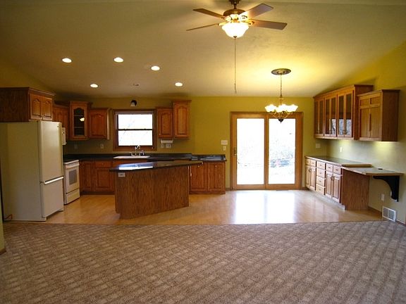 Country Ranch! Newer home has open floor plan with spacious kitchen and attached dining area leading to living room with vaulted ceilings and gas fireplace. Split bedroom layout has large master bedroom with walk-in closet and attached bath, first floor laundry and partially finished lower level with family room and office. Property has mature trees and an extensively landscaped yard with impressive patio entertaining area.
