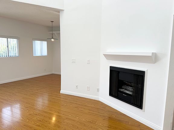 Spacious 2 Bedroom 2 Bath Apartment, approx 1000 sq/ft. Newly painted. Laminate floors through out. Central Heating and Air Conditioning. In Unit Washer & Dryer, Walk In closets. Living room as high vaulted ceilings and gas fireplace. Private Balcony off of the living room. Primary bedroom comes with a gas fireplace and walk in closet. Kitchen has lots of countertop space, gas stove, microwave, dishwasher, and refrigerator. 2 Car Parking included. Excellent location! Walk to shops and restaurants.