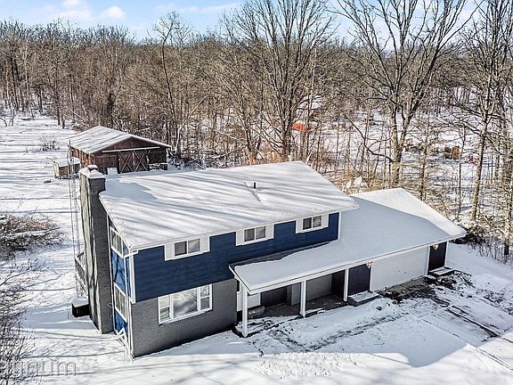 To assist with a quick sale, sellers offering $10,000 in concessions. Tucked away in the woods yet close to everyday conveniences, this private colonial offers a rare combination of seclusion, acreage, and modern updates. With a nearly 100 ft set back, the home is accessed by a tree-lined driveway and surrounded by almost 8 wooded acres, creating a peaceful, park-like setting. Inside, the home has been renovated from top to bottom, featuring a newer furnace (2023), new gutters (2026), all new flooring, fixtures, ceiling fans, vanities, doors, paint, and other updates throughout. The inviting living room is anchored by a natural fireplace, perfect for cozy evenings. The updated kitchen shines with new cabinetry, granite countertops, sink, and flooring, offering both style and functionality. Outdoors, the property truly sets itself apart. Enjoy your own pond, ideal for fishing, while the expansive wooded acreage provides excellent opportunities for hunting right on your own land. A 40x30 pole barn with 200-amp electrical service offers ample space for storage, hobbies, or equipment. This sale also includes an additional neighboring 4.43-acre parcel, bringing the total acreage to 7.76 acres, a rare find for those seeking space, privacy, and versatility. A fully updated home, exceptional outdoor features, and unmatched privacy, this is country living at its best!