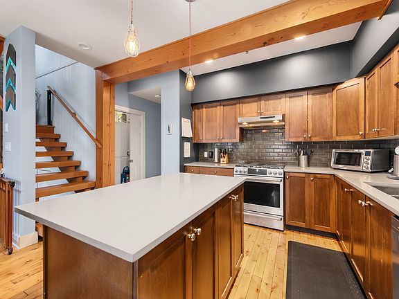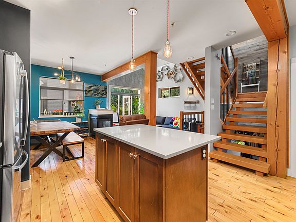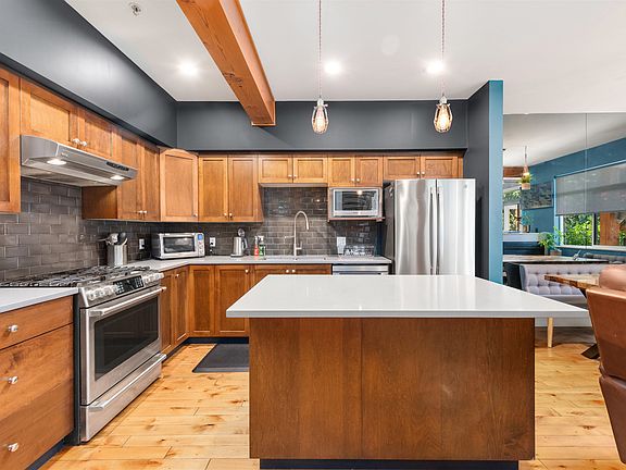Welcome to this exceptional end-unit townhouse, featuring stunning mountain views and a private side yard. This beautifully appointed home includes 3 bedrooms, 2.5 bathrooms, and a versatile loft ideal for an office or extra bedroom. The main floor boasts charming timber beams, hardwood flooring, and 9-foot ceilings, enhancing the spacious feel. The updated kitchen features new countertops and stainless steel appliances. Enjoy evenings by the gas fireplace or unwind in your private hot tub on the composite deck. The ground floor includes a workshop/rec room, perfect for hobbies. With $100,000 in renovations, smart home technology, and a Level 2 EV-ready garage, this property is a modern oasis. Don’t miss this rare opportunity!