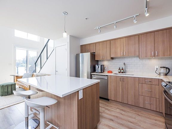 Large deckLarge oversize windowsLarge kitchen islandStainless steel appliancesLaminate flooring
