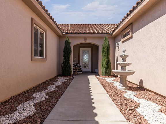 Beautiful custom 2,450 sf home. Here is a nicely laid out floor plan. Main bedroom sits off to the right separate from the other two bedrooms, plus there is a Casita (Mother-in-law) with it's own entrance, bathroom and walk-in closet at the front of the home. As you enter the home there is a beautiful foyer heading to the great room. The main bedroom is substantial in size and so is the main bathroom with beautiful granite vanities and a jetted tub, beautiful walk-in shower and two walk-in closets. Main bedroom has it's own access to the covered patio and a relatively new hot tub. The kitchen has beautiful granite counter tops and plenty of custom cabinets. French doors lead you to the fully covered wrap around patio. Enjoy wonderful sunset from the patio. Irrigation drip lines to shrubs and plants. Also they have a pomegranate fruit tree that produces each year. There is plenty of opportunity to build your shop or add a RV Garage for all those toys. NO HOA!! Shared water well, share with only two homes on agreement. Mesquite, NV 8 miles, St. George, UT, 35 miles
