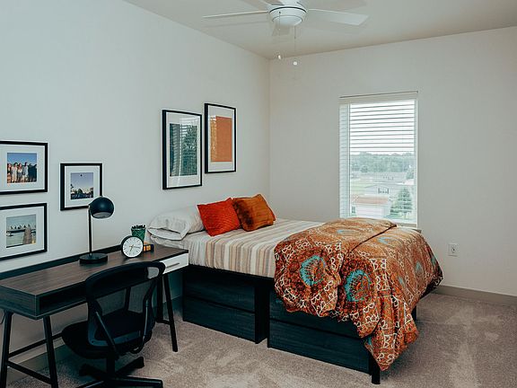 Two bedrooms and two baths provide a large space complete with a modern kitchen. Live in modern luxury in a unit and building the provides the best amenities in Lafayette, Indiana.