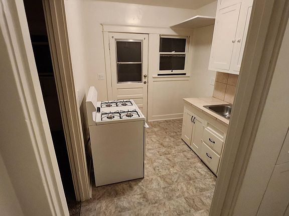 This charming duplex in the Wood Streets offers one bedroom and one bathroom. It features a spacious living room with a vaulted ceiling, a dining area, and ample built-in storage. Window air conditioning units are provided in both the dining room and bedroom. Please note that residents are required to provide their own refrigerator. There are no washer and dryer hookups available, so laundry facilities will need to be utilized offsite. The kitchen provides access to a side yard and driveway parking. There is a large, unfenced backyard. The garage is designated for storage purposes only.