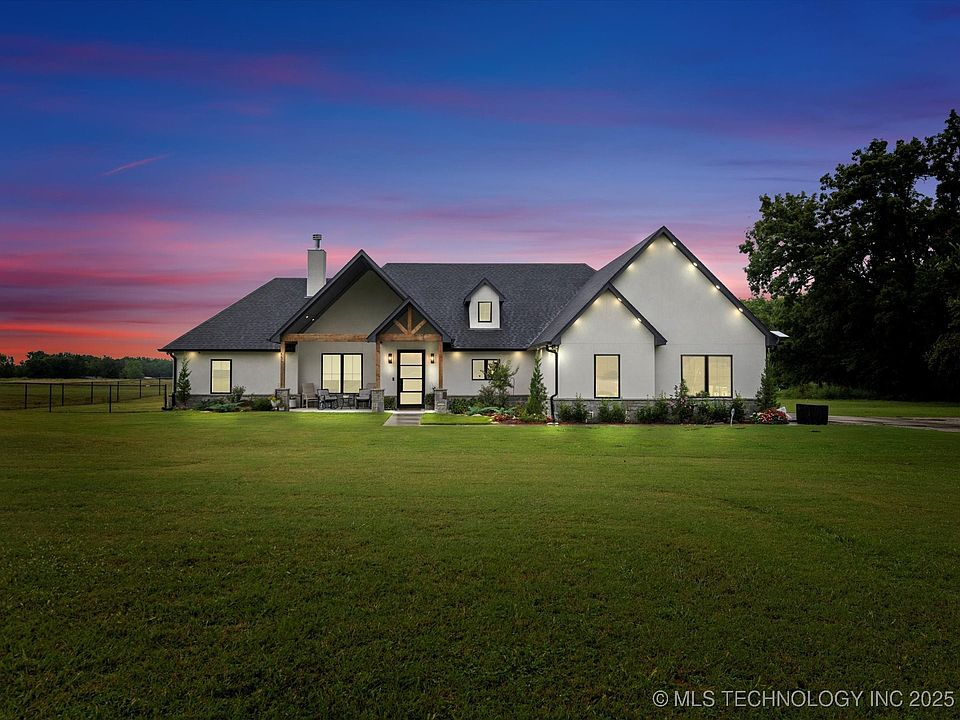 Welcome to your serene countryside escape just minutes from town. This stunning home offers a perfect blend of comfort, style and convenience in this elegant 3 bedroom, 2.5 bath home, nestled on a generous 4.88 acre lot (+/-). This spacious open concept home offers the perfect space for family gatherings and entertaining guests. The large primary bedroom provides a peaceful retreat, complete with an ensuite bathroom for added privacy and convenience. The large open concept kitchen is a chef's dream with newer appliances, and a large island. One of the many features of this home is the massive walk in pantry - you simply must see this pantry! Enjoy the serene ambiance of the covered back patio, ideal for outdoor gathering and quiet moments of reflection. The three car garage features an indoor safe room. Next to the cement drivway pad is a gravel boat/RV parking area. This place has everthing you need! Make your country living dreams come true! Don't miss this once-in-a-lifetime opportunity!