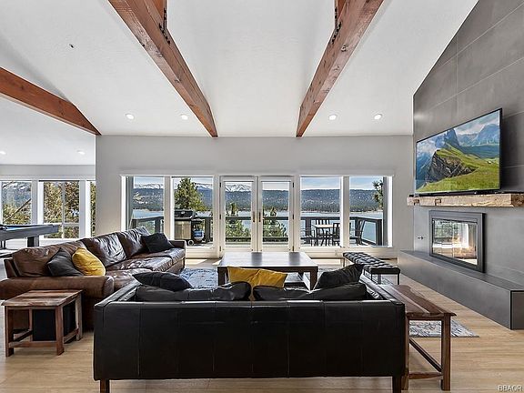 MILLION DOLLAR VIEW! Wait till you see the Spectacular 180 Degree View of Big Bear Lake and Surrounding Mountains from this Architecturally Perfect, 4 Bedroom, 3.5 Bath Passive-Solar-Designed, Multi-Level Home with Open Floor Plan, Vaulted Ceilings, 3 Rock Fireplaces, Walk-in Pantry, Spacious Den (or Library), Full Laundry Facilities w/ Deep Sink, Master Suite w/ Double Walk-in Closets, Wet Bar w/ Frig, Rock Fireplace, Brand new Indoor "Intimate" Spa in Master Bath, Nu-Tone Intercom System, Two-50 Gal Water Heaters, Two-Central Forced Air Heating Systems, Complete Fire Suppression, Security & Alarm System, Spacious Storage Loft, Extensive Redwood Decking w/ Wind/View Protection, Timed Irrigation System, Fully Fenced Rear Yard with separate-side Dog Run, Two-Single Car Attached Garages and an Additional 1,000 Sq. Ft unfinished bonus area in Basement (ready to be finished off) All with the Most Fabulous View in Big Bear.