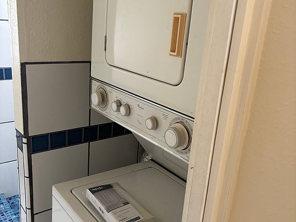 Washer/dryer in Unit. 2 large French doors opening out to very private patio. Very open spacious