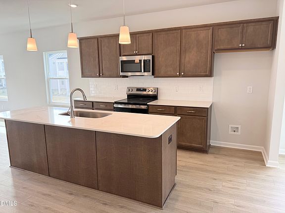 WAKE COUNTY'S SOUTHERN GATEWAY TO THE TRIANGLE is now Wake County's absolute BEST VALUE! Uptown END POSITION brick accented townhome lives LARGE! Higher end appointments you don't see at this price range: MAIN FLOOR GUEST; every bedroom with DIRECT BATH ACCESS (3.5 BATHS); Kitchen with QUARTZ for miles and BUTLERS PANTRY. Built-in organizer at Mud Room; Luxe Primary Suite with DUAL VANITY bath and 5' WALK-IN TILE SHOWER. Easy sidewalk stroll to all the neighborhood FUN - pool, cabana, playgrounds, dog park, trails and more! TOP LOCATION with super easy access to I-40, Hwy 70 and Future 540 making exploring the entire Triangle and beyond effortless. Dinner at North Hills? No problem - 20 minutes. Concert at Red Hat? Be seated and ready in 20 mins. Beach day at Wrightsville? Toes in sand in under 2 hours! Come see the VALUE that life at Wake's Southern Gateway affords!
