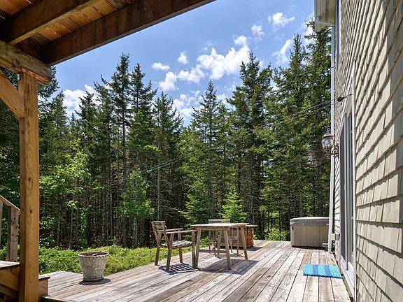 This custom home built in 2003 is just a short stroll to the Marshall Point Lighthouse, Drift-In Beach and all Port Clyde Village has to offer. Situated well off the road on a private five acre parcel this well cared for home offers on the first level: Two spacious bedrooms and a full bathroom, a large primary bedroom suite with a walk-in closet, laundry area and a full bathroom with clawfoot soaking tub and double walk-in tiled shower, heated towel rack and walkout slider to a private back deck with a salt water hot tub. Second level features a large open concept kitchen with center island seating, a spacious combination living room, dining area and family room with a slider to a second level deck overlooking the pine and spruce tree forest. Second level also has a full bathroom and office area. Home also features: Newer roof in 2019, energy efficient Buderus Boiler with wall mounted radiators and radiant heat in the tiled kitchen and bathroom floors. Newer generator, On-demand Rinnai hot water system, central vacuum system, partially finished walkout basement with full utility bathroom, a second laundry hookup and a wood stove.