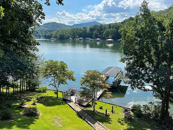 Lakefront House on Chatuge! Approximately 30 yards from lakeshore and boat dock. The dock has two covered slips and sun-deck. The interior is fully renovated with granite countertops, stainless steel appliances, tongue and groove pine, corrugated metal panels, custom made laurel wood handrails, bathroom vanity, glass enclosure shower, river rock, Two decks, one patio, two private master suites. Located on a quiet one lane country road with views of the mountains and Lake Chatuge. Enjoy the private and peaceful cove without numerous watercraft’s traveling through. Two fire pits, one large smoker, plenty of covered exterior storage, new metal roof with a 50 year warranty.