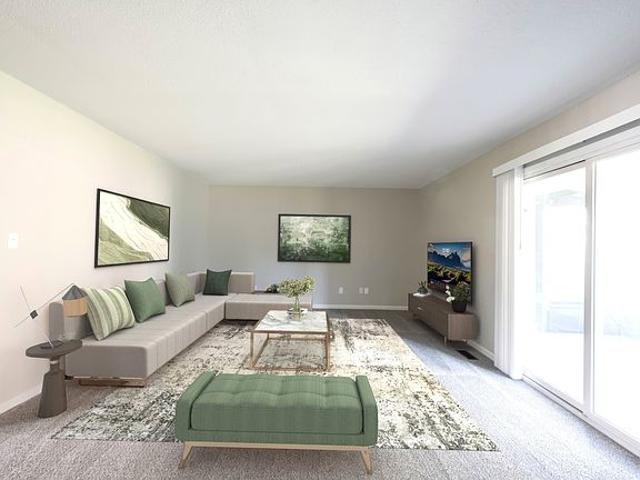 Quartz countersSpacious greatroomBrand new kitchenStainless steel appliancesNew carpetWhite cabinetsNeutral paint color