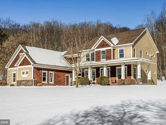 Spacious living, idyllic country setting, and an appealing St. Croix River Valley location are the hallmark traits of this lovely 4 BR, 4 BA 2 story home set on a 2.5 acre tranquil home site. This home enjoys abundant natural light and a layout designed for easy living and entertaining. Main floor includes a stylish open kitchen, formal and informal dining, light filled living room warmed by a gas fireplace, front office and main floor laundry/mudroom. Upstairs, you will find all 4 bedrooms with the Ownerâs suite featuring an oversized walk-in closet, a spacious private bath with dual vanities, separate bath and shower. The lower level of the home, is sure to be the center of attention for gatherings and entertaining with the family room accented by a cozy gas fireplace and the entertainment/rec room highlighted with a built-in wet bar setup. Nice private wooded backyard with an inviting outdoor patio and grilling area, irrigation system, central vac, granite counters, wood floors.