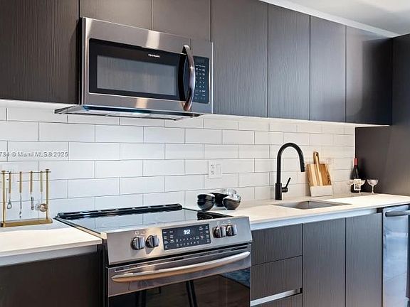 Welcome to this beautiful and amazing view of Biscayne Bay, Studio / 1 bath with unobstructed views, luxury amenities and a preferential location in Downtown Miami. Fully furnished, where you will only have to bring your personal belongings. I present to you THE ELSER Luxurious features include 9+ foot celling, quartz countertops, and elegant porcelain wood-grain title flooring. the kitchen boasts sophisticated Italkraft cabinets, while fully built-out closets offer . Modern bathrooms with frameless glass showers. Few minutes to South Beach, Brickell, Airport and I95. Pools area, picnic area, Business Center, Beach Service, Bar, Gym and others. Pets allowed, long or SHORT TERM RENTAL allowed. Contact the listing Agent