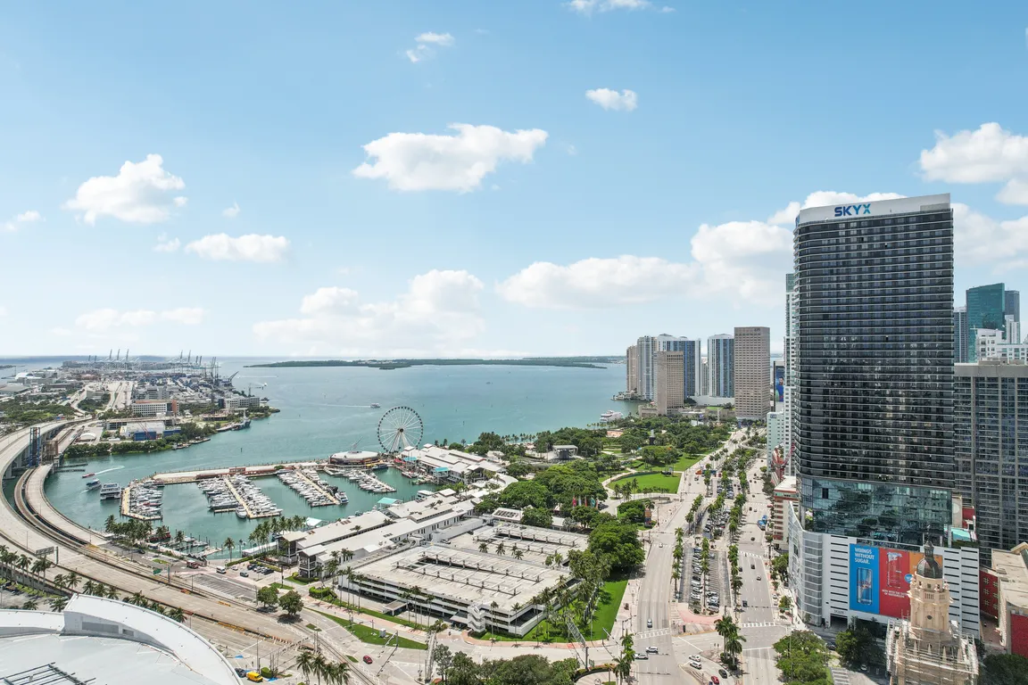 Stunning miami downtown skylineQuartz countersEquipped gourmet kitchenCustom italian cabinetryCalifornia closetsLuxe bedding