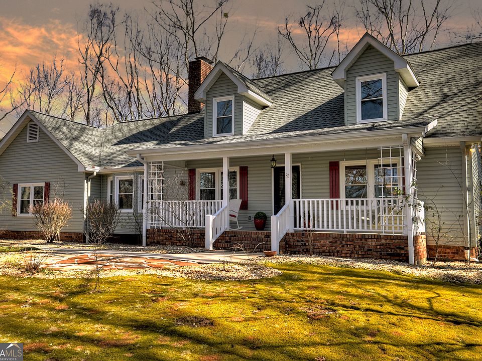 Welcome to this stunningly renovated Southern Living-style home, where breathtaking 360-degree seasonal mountain views meet timeless charm in a serene, private setting-just minutes from downtown Ellijay! This 4-bedroom, 3.5-bathroom home exudes Southern elegance in every detail. Nestled within a beautifully landscaped yard, you'll find vibrant perennials adding a touch of color throughout the seasons. A winding concrete driveway leads to ample parking and a two-car garage, conveniently located just off the kitchen. A charming covered rocking-chair front porch welcomes you, with a concrete sidewalk guiding you to the entrance. Step inside to discover a spacious living room featuring a classic brick gas-log fireplace, perfect for cozy gatherings. Throughout the home, you'll find custom pine flooring and ceilings, recessed lighting, and updated wainscoting, adding warmth and character. The dining area is ideal for entertaining, highlighted by a bay window that frames picturesque views of the front yard. The chef's kitchen boasts stainless steel appliances, a five-burner gas cooktop, a custom cherry bar area, an updated wooden vent hood, and ample cabinet space. A butler's pantry provides additional storage and includes a pantry with sliding doors. Adjacent to the kitchen, a cozy breakfast/sitting area with a bay window offers the perfect spot to enjoy stunning seasonal mountain views. This space also connects to a newly renovated laundry room addition. A powder room is conveniently located off the living room. The oversized master suite on the main level features an electric fireplace, a spacious walk-in closet, and a fully renovated en-suite bath with a large walk-in shower. Upstairs, a renovated wooden staircase leads to two generously sized bedrooms, a full bathroom with a double vanity, and a large storage room that could also serve as an office or flex space. The partially finished daylight basement expands the home's living space with a large family room, a full kitchen, a guest bedroom, and a full bathroom with a single vanity. The unfinished portion provides an impressive storage area with an additional laundry hookup. Outside, you'll find a custom garden area and a spacious workshop, perfect for hobbyists or additional storage. Priced below appraisal, this exceptional home is a rare opportunity to own this charming dream home!