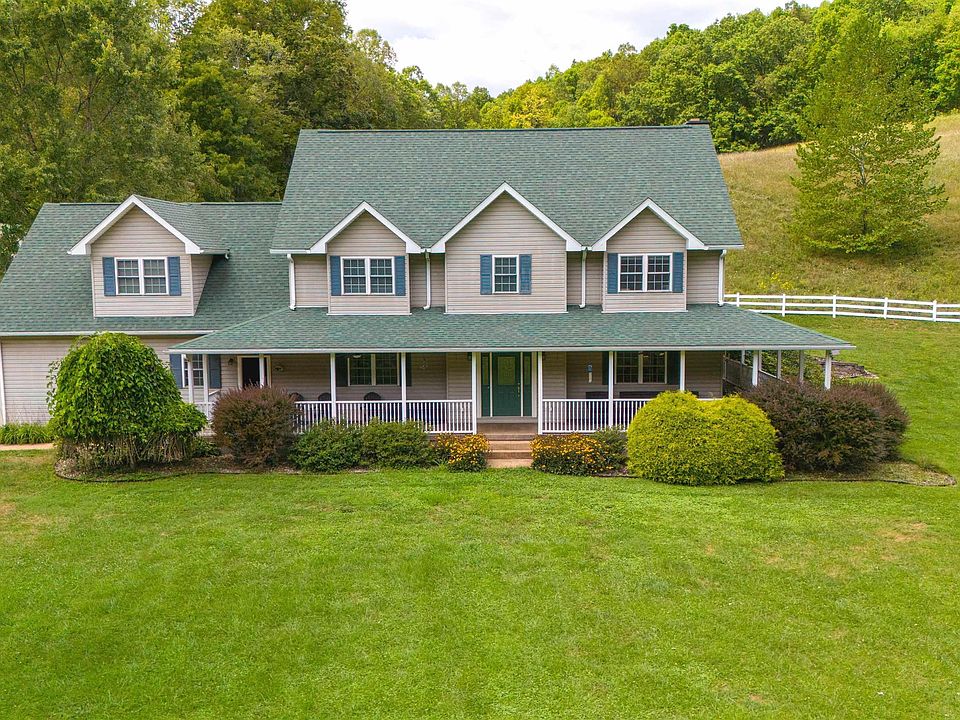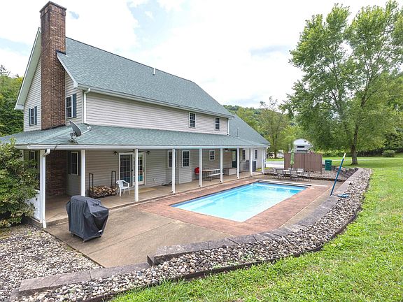 You will never want to leave 398 Raccoon Run Road! Over 47 acres of rolling mountain views that is partially fenced including horse/quad riding trails, perfect for farming and hunting! Offering 1600 sq ft 3-5 stall horse barn w heated tac room, water and electric (separate) as well as a 1200 sq ft (2) bay block workshop w separate electric, 2 floors and oil pit. Not to mention the 3300 sq ft 3 bedroom (possibly 4) 2.5 bath spacious, modern 2 story home w 2 Stall attached garage! Also featuring an inground, salt water, gas heated crystal clear pool to cool off on those hot summer days! First floor features custom kitchen with Kraftmaid cabinets and island, granite countertops, stainless steel appliances included! Kitchen can be eat-in or have a formal sit down dinner in your formal dining room! First floor features open concept to the living space featuring a cozy stone wood burning fireplace as the focal point! Open up the sliding glass doors to the wrap around concrete stamped covered porch to your outdoor oasis featuring inground salt water pool, plenty of room for soaking up the sun and parties! First floor also features a private office with built in bookshelves and half bath. New LVP flooring throughout the first floor as well! The second floor has it's own 29 x 21 Game room or make it a 4th bedroom! Game room features LVP flooring, bar, pool table, and dart board! You definitely will appreciate the spacious primary suite featuring 19x15 primary bedroom and custom refinished primary bath with tile shower and bench, double vanity with granite countertops and soft close shelves plus WIC! All bedrooms are super spacious! The main bathroom has been recently updated with new double vanity, granite soft close cabinets and tile flooring. Laundry room is on the second floor so no need to travel the stairs! New roof (2020), New HVAC (2020) and brand new hot water tank (2024)! Only .4 miles from Route 50. Pre approval or Proof of funds required for appointments. see agent notes