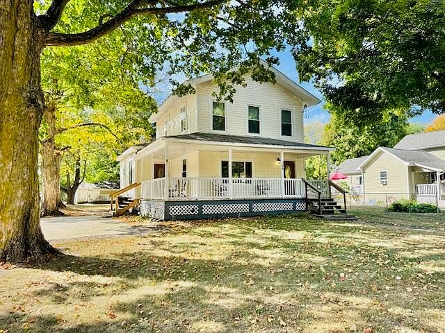 Welcome to this Stylish Vermontville Gem, which Sits on a Massive Double Lot and is Move-In Ready. This Spacious Four Bedroom, Two Full Bathroom Home has been Updated within the Past Five Years to Include, but not Limited to~ New Plumbing, Drywall, Windows, Vinyl Siding, Flooring, Cabinets, and Counter Tops. Before Entering, You are Welcomed with a Large, Covered, Wrap-around Porch~ Perfect for Relaxing, even in the Rain. Setting Foot Inside, You are Greeted with the Roomy and Bright Open Floor Plan, which is Great for Hosting. Suited just off from the Kitchen, is a Peaceful Deck, which could be Home to Grilling, or just to Enjoy the Serene Back Yard. The Main Floor is also Home to Two Bedrooms, and a Convenient Full Bathroom. Meandering Upstairs, You will Find The Large Primary Bedroom, Highlighting a Spacious Walk-in Closet, along with the Fourth Bedroom, and the Second Full Bathroom. Continuing to the Outside, there is an Ample Barn which is Appreciable for Storage. There is also Central Air, and All Appliances listed, Stay.