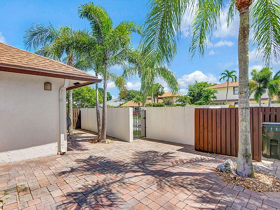 Great opportunity to experience living in Delray's desirable WoodLake Community located just 2 miles from trendy downtown Atlantic Ave. beaches, and restaurants. This 3/2 townhouse feels like a SFH with a one-car garage and a huge private backyard perfect for entertaining: privacy walls, large paved patio and courtyard, room for a pool with a beautiful lake view. Updated bathrooms, volume ceilings. Community pool, fitness center, clubhouse, tennis, pickleball, and basketball court with a low HOA fee, includes cable & internet. Truly pet friendly community, allowing up to 2 pets of 100 lbs each.