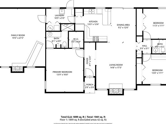 Two fireplacesFlexible living spaceFrame constructionCorner lotSpacious kitchenCathedral-style cedar tongue-and-groove ceilings