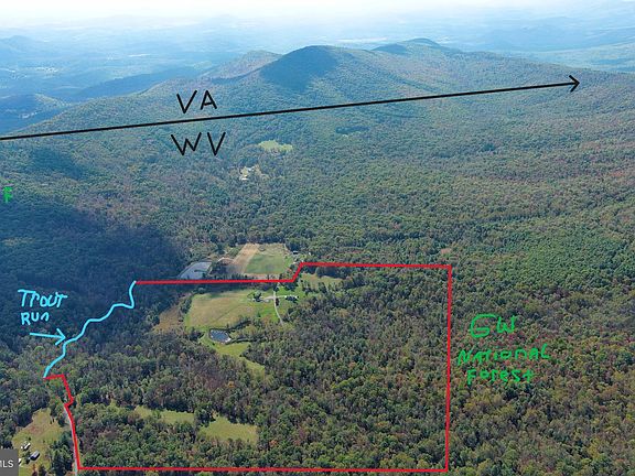 THE UNICORN....STUNNING 96 ACRE HOMESTEAD ELEVATED AT 1900 FT IN THE TROUT RUN VALLEY WITH JAW DROPPING VIEWS IN EVERY DIRECTION. UNRESTRICTED AND 100% USABLE LAND....BOUNDED ON ONE SIDE BY 1400+ FT OF FRONTAGE ON "TROUT RUN" AND BOUNDED ON ANOTHER SIDE BY 1693 FT OF FRONTAGE ON THE GEORGE WASHINGTON NATIONAL FOREST. 15 ACRES OF OPEN LAND, 8 OF WHICH ARE FENCED FOR LIVESTOCK WITH A 1/2 ACRE STOCKED POND. MASSIVE 48X30 2 STORY BANK BARN WITH STALLS TO KEEP YOUR ANIMALS OUT OF THE WEATHER. SIMPLY PUT, THE LAND IS SPECTACULAR AND CHECKS EVERY BOX; WOODS, VIEWS, FIELD & STREAM. BORDER WITH NATIONAL FOREST PROVIDES ENDLESS OPPORTUNITIES FOR THE HUNTER & HIKER. THE HOUSE, CIRCA 1800 FOR THE ORIGINAL LOG STRUCTURE WHICH IS THE HEART OF THIS HOME, THE NEXT ADDITION IN 1923 AND IN 2006 THE CURRENT OWNERS DID THE FINAL ADDITION AND COMPLETE REHAB WITH LOG SIDING AND STANDING SEAM METAL ROOF. COMFORTABLE AND SPACIOUS, OVER 2400 SQ FT OF FINISHED LIVING SPACE. RECENT UPGRADES INCLUDE A WHOLE HOUSE GENERATOR IN 2022 AND NEW FURNACE IN 2024. THE HOME HAS BEEN WELL CARED FOR AND IS IN EXCELLENT CONDITION, SUITABLE FOR YOUR WEEKEND RETREAT OR FULL TIME HOME. THE VIEWS FROM THE FRONT PORCH WILL BLOW YOU AWAY! GAZE UPON "BIG SCHLOSS" AND OTHER PEAKS IN THE NATIONAL FOREST, BUY WITH CONFIDENCE KNOWING THAT YOUR VIEWSHED WILL ALWAYS BE PROTECTED AS EVERY MOUNTAIN YOU SEE IS WITHIN THE FOREST. THE LOCATION....1 MILE FROM THE VIRGINIA LINE AND THE "WOLF GAP" RECREATION AREA.... 20 MINUTES FROM INTERSTATE 81, WOODSTOCK, VA & WARDENSVILLE, WV....111 MILES FROM THE WHITEHOUSE.....EASY 1.5-2 HOUR DRIVE FROM ANYWHERE IN NORTHERN VIRGINIA BUT FEELS LIKE YOU'RE ON THE OTHER SIDE OF THE PLANET. A TRULY SPECIAL PROPERTY, POSTCARD WORTHY PICTURES CAN BE TAKEN FROM ANY SPOT. THE PHRASE "ONCE IN A LIFETIME OPPORTUNITY" IS WAY OVER USED IN THE REAL ESTATE BUSINESS BUT APPLIES HERE. THIS PROPERTY IS THE DEFINITION OF A "UNICORN" WHAT WE THINK DOES NOT EXIST UNTIL YOU SEE IT WITH YOUR OWN EYES! PRE QUALIFICATION LETTER OR PROOF OF FUNDS REQUIRED TO SCHEDULE APPOINTMENT, NO EXCEPTIONS!